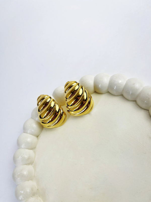 Chic and sculptural, these swirl-formed hoops elevate everyday wear with a bold, polished edge. Ideal for brunches, dinner dates, or any time you want to feel instantly refined. A modern classic in rich gold tones.