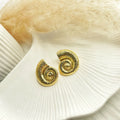 The Mira Shell Studs feature a textured spiral form that radiates sophistication and charm. Their sculptural design and glossy gold finish make them the perfect pick for brunches, festive gatherings, or modern statement looks.